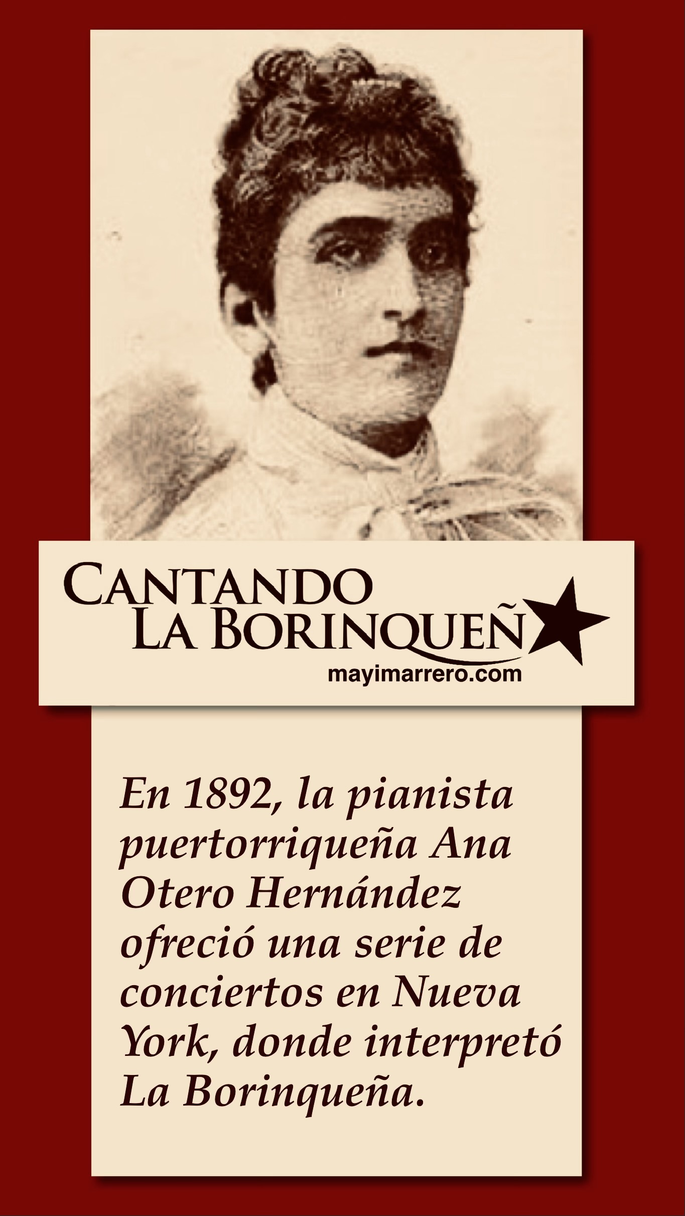 A fines del siglo XIX, la pianista puertorriqueña Ana Otero Hernández ofreció una serie de conciertos en Nueva York, donde interpretó La Borinqueña. En una de las veladas se encontraba el patriota cubano José Martí, quien quedó fascinado con la pianista y con la dulce melodía de la pieza queda era reconocida extraoficialmente como Himno de Puerto Rico.