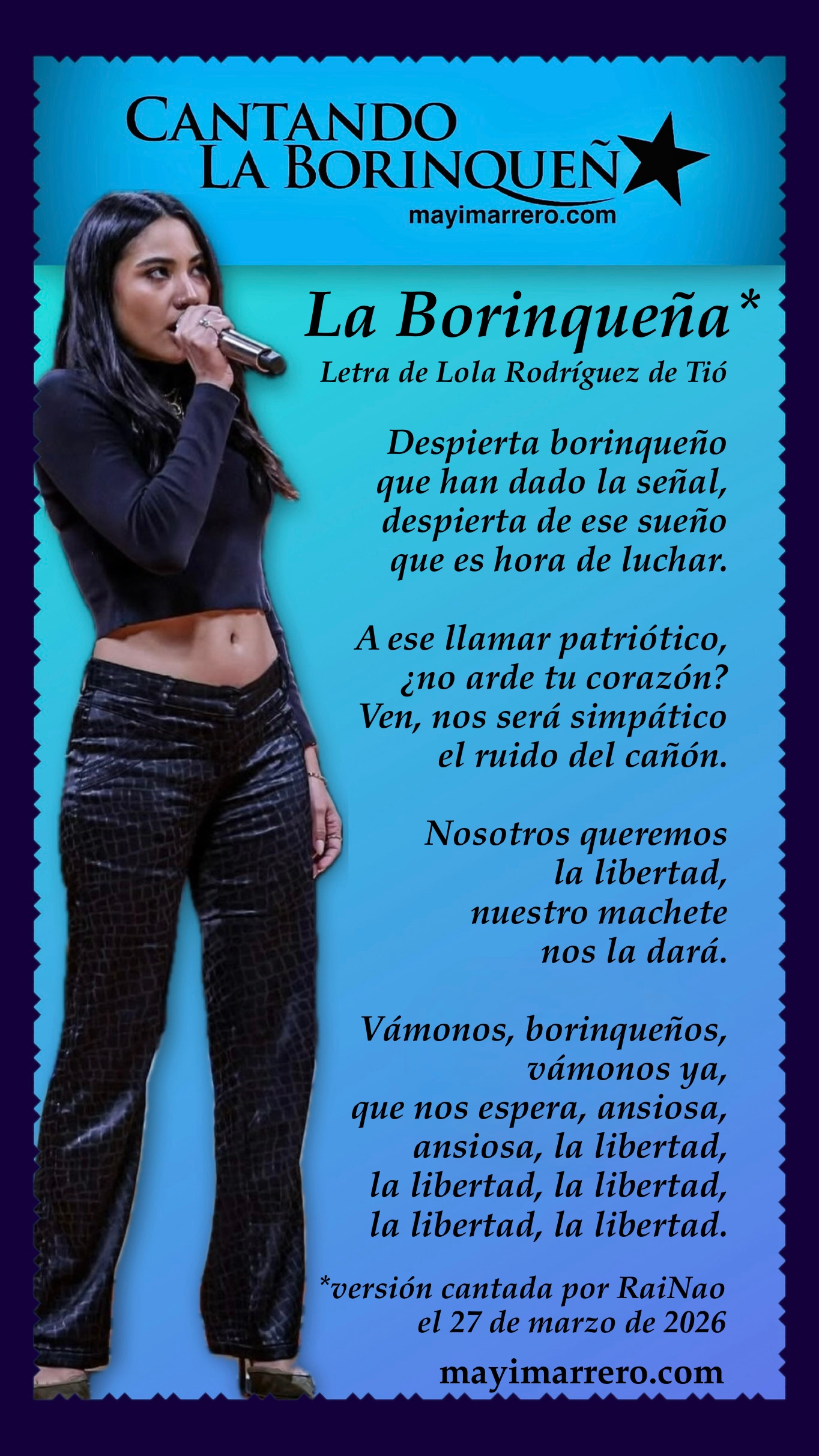 RaiNao cantó La Borinqueña, el verdadero Himno de Puerto Rico. Se ha especulado mucho sobre si La Borinqueña con la poesía de Lola Rodríguez de Tió es o no es el Himno Nacional de Puerto Rico. Hagamos un breve recuento histórico…
